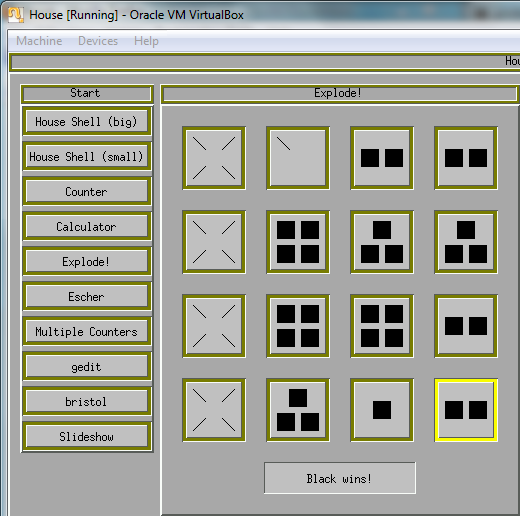 Surprisingly, this is the only accurate CR port I know of, which is why I wrote it. There's a slightly disturbing DOS/X game based on it, but it lets atoms (er, foxes) share cells, and adds walls. (Still, if you want to get it to build, it seems to have fallen out of maintainance. It's GPL, though, so here's my patched version.) A two-player version called "Explode!" exists amongst the demos of a research OS written in Haskell(!) called House, but a player is only eliminated when they cannot move because the board is full.