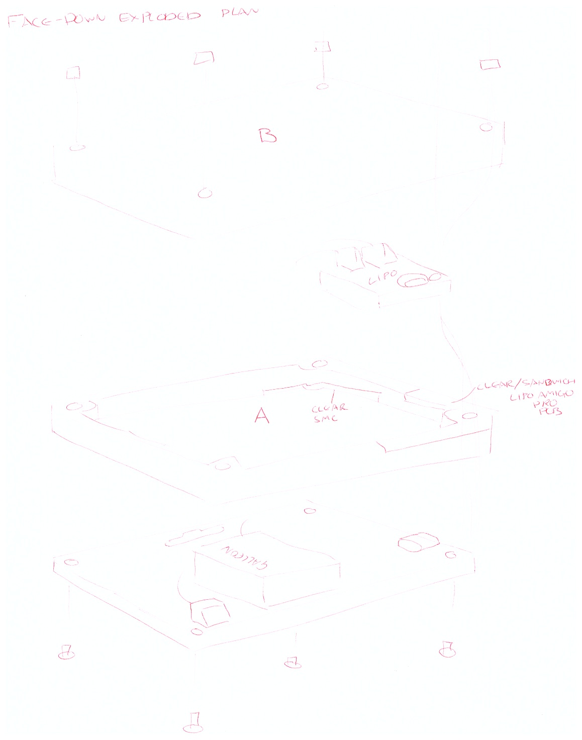 The Amigo is going to locate on pins in the lid like this (cables disconnected and uncurled to avoid obscuring everything and let it lie flat):
